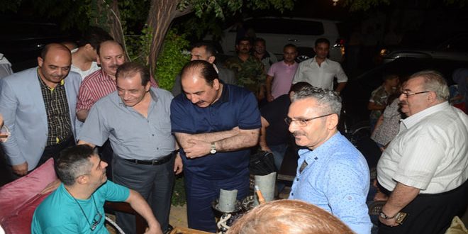 وبين الهلال خلال حديثه مع الأهالي والمواطنين الذين التقاهم في المطاعم والمقاهي والشوارع أن الجيش العربي السوري يواصل تطهيره جميع المناطق التي يتواجد فيها الإرهابيون متسلحا بعزيمة وإرادة لا تلين وعلى هؤلاء المجرمين القتلة أن يختاروا أمرين لا ثالث لهما إما أن يعودوا من حيث أتوا أو أن يتم القضاء عليهم بأيدي الشعب والجيش.