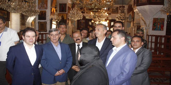 وخلال الجولة زار الوزير والمحافظ وامين فرع الحزب دير السيدة في صيدنايا والتقوا الأم فيبرونيا نبهان رئيسة الدير التي قدمت لمحة موسعة عن بنائه وعن الأحداث التي عصفت به وصولا إلى اعتداء الإرهابيين على الدير خلال الأزمة التي مرت بها سورية ولا تزال.