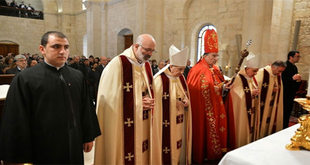 وأضاف الراعي “نتضرع إلى الله من أجل إحلال السلام في سورية والعراق وفلسطين وحل الأزمات بالمفاوضات السلمية وندعو لانسحاب الاحتلال الإسرائيلي من الأراضي المحتلة في سورية ولبنان وفلسطين”.
