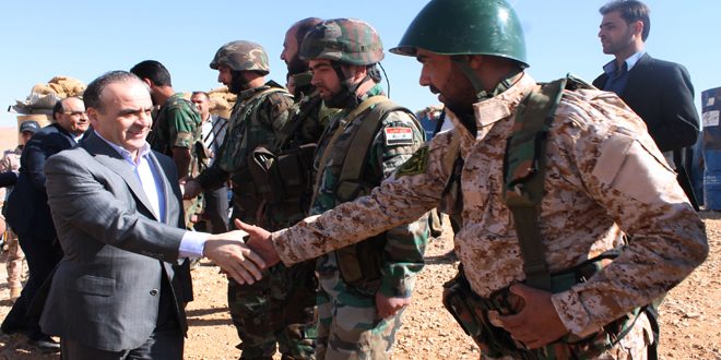 ونقل المهندس خميس لأبطال الجيش “محبة السيد الرئيس بشار الأسد وتقديره للتضحيات التي يقدمونها للدفاع عن وحدة سورية واستقلالها لتبقى الحصن المنيع والصخرة الصلبة التي تتكسر عليها مطامع الأعداء وأحلام الغزاة”.