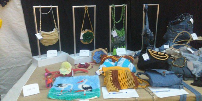 ويضم المعرض الذي يستمر أربعة أيام أجنحة متعددة شملت مصنوعات من الأقمشة المستعملة التي تم تدويرها ومنتجات وأعمالا وأشغالا يدوية ومطرزات وحقائب ولوحات فنية شارك في إنتاجها نحو 23 مشاركاً ومشاركة من ذوي الاعاقة والأصحاء.