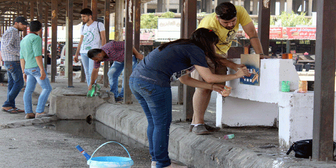المبادرة التى حملت عنوان “تحسين واقع كراج جبلة بصريا” عمل الشباب فيها لساعات متواصلة على مدى ثلاثة أيام لتلوين وتأهيل الأرصفة والجدران والمقاعد وبث روح جديدة فى المكان وتجسيد رؤيتهم وأملهم بغد أفضل لسورية التى ستنتصر حتما على الإرهاب.