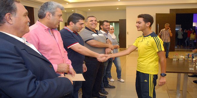 بدوره قال رئيس اللجنة التنفيذية لفرع الاتحاد الرياضي بدمشق فايز الحموي إن تكريم الرياضيين المتميزين أصبح تقليدا دائما في جميع مؤسسات الاتحاد الرياضي العام لأنه يهدف الى تشجيع الأبطال على استمرار التدريب وبذل الجهود لتحقيق مراكز متقدمة ورفع علم سورية في البطولات الخارجية.