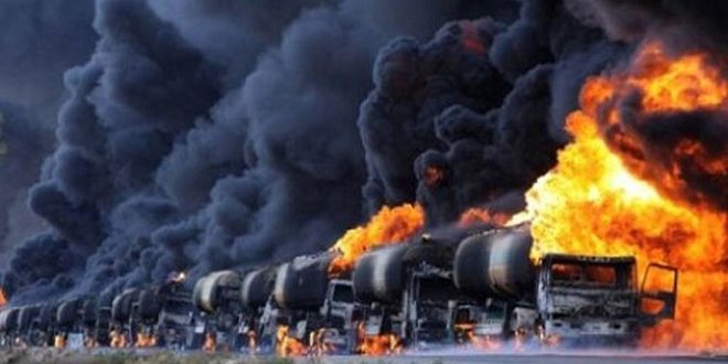 ويحصل تنظيم “داعش” الإرهابي على جزء كبير من تمويله من بيع النفط السوري والعراقي المسروق عبر عمليات مشبوهة تورط فيها نظام رجب أردوغان الذي تنقل شاحناته هذا النفط إلى الأراضي التركية تحت أنظار قوات التحالف المزعوم الذي تقوده الولايات المتحدة.