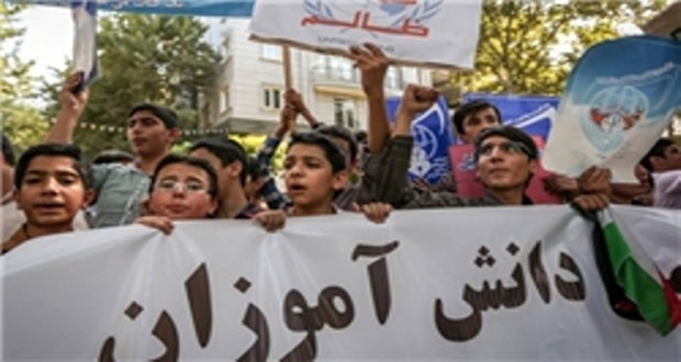 نظم مئات الأطفال الإيرانيين مساء أمس تجمعا حاشدا أمام مكتب منظمة الأمم المتحدة في طهران احتجاجا على المجازر التي يرتكبها كيان الاحتلال الصهيوني بحق النساء والأطفال الأبرياء في العدوان الوحشي على قطاع غزة.