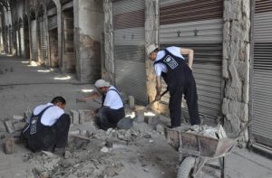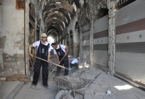 وأشار المهندس غسان جانسيز مدير مشروع تأهيل الأسواق التراثية بحمص إلى أنه تم تقسيم العمل على 4 مراحل وكل مرحلة تمتد لستة أشهر ويسبق عملية الترميم رفع الأنقاض وتوثيق السوق ورسمه ثم يتم البدء بعمليات الترميم لإعادة الحياة الطبيعية والعجلة الاقتصادية للسوق مبينا أنه تم البدء بالمرحلة الأولى لترميم الأسواق في مدينة حمص القديمة التي تضم 4600 محل تجاري وأن المشاركين في عمليات التوثيق نحو 300 مهندس وطالب جامعي في مختلف الاختصاصات الهندسية إضافة إلى 70 اختصاصيا بإزالة الانقاض.