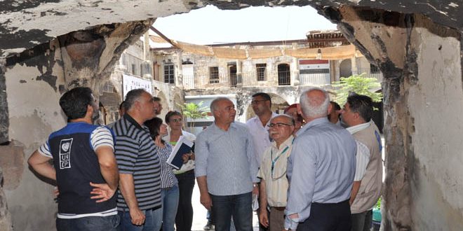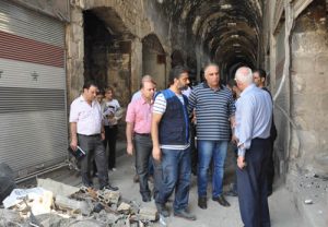 بحث محافظ حمص طلال البرازي مع لجنة تأهيل منطقة الأسواق التراثية بالمحافظة اليوم آلية إعادة تفعيل الوسط التجاري وترميم منطقة الأسواق التراثية في وسط المدينة.