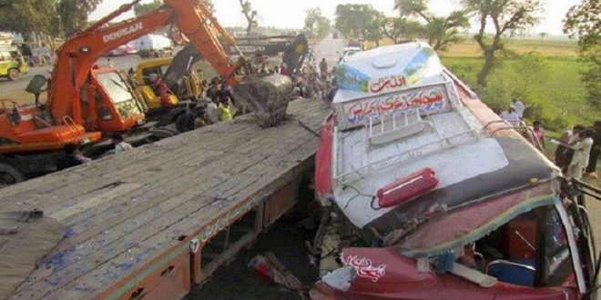 قتل 16 شخصا على الأقل جراء سقوط حافلة كانت تقلهم وهم في طريقهم لحضور حفل زفاف شرق باكستان.