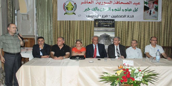 وأكد أمين فرع طرطوس لحزب البعث العربي الاشتراكي غسان أسعد أهمية جهود الصحفيين الذين يقفون إلى جانب الجيش العربي السوري في وجه الإرهاب الذي تتعرض له سورية والذين استشهدوا من الاعلاميين من اجل كلمة الحق.