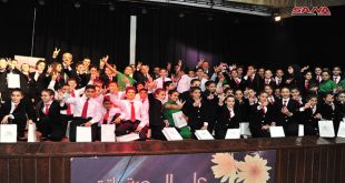 كرمت دائرة التعليم الشرعي في مديرية أوقاف حلب بالتشارك مع الفريق الديني الشبابي أمس 18 طالبا وطالبة من المتفوقين في الشهادتين الإعدادية والثانوية الشرعية و 61 طالبة من حفظة القرآن والحديث واللغة العربية الذين خضعوا لمسابقات بالتنسيق بين دائرتي التعليم الشرعي والدعوة النسائية.