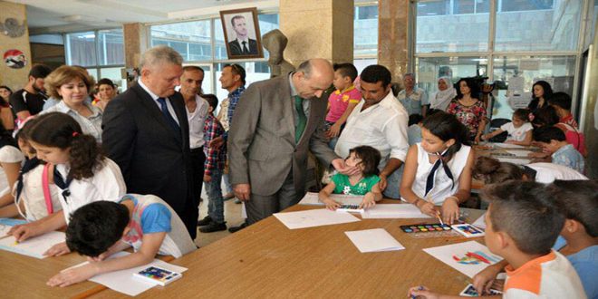 وتضمنت فعاليات الاحتفالية التي انطلقت أمس ورشة رسم خارجية وغرس نباتات في حديقة مديرية الثقافة بالإضافة لافتتاح معارض لنتاج عمل الأطفال واليافعين في الورشات الفنية والأعمال اليدوية وفي مركز الإقامة المؤقتة بمعسكر الطلائع في قرية رساس ضمن مشروع مهارات الحياة والدعم النفسي ومعرض لكتاب الطفل من منشورات وزارة الثقافة وكذلك رسوم لكتب الأطفال ومعرض للأعمال الفنية للأطفال الفائزين بمسابقات مديرية ثقافة الطفل السنوية وأبناء الشهداء للعام الدراسي 2015-2016.