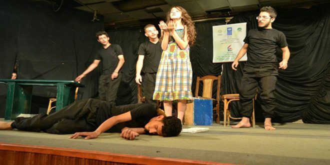 بدوره أشار الممثل الشاب “حسين سخية” إلى أن العمل يتبع لمشروع حلم مصياف يعني بالثقافة والفن وتأهيل الكوادر الفنية الذي تنظمه مطرانية السريان الكاثوليك وجمعية مصياف الخيرية للتماسك المجتمعي بالتعاون مع برنامج الأمم المتحدة الانمائي وفرقة “صوت” المسرحية التي تقدم العرض.