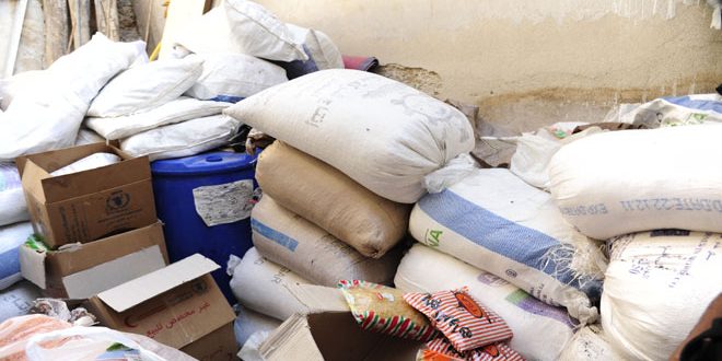 ضبط 15 طنا من مواد الإغاثة الغذائية في منطقة الميدان بدمشق معدة للبيع