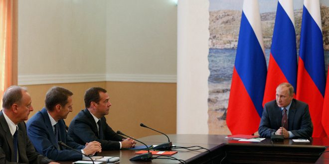 وقال بوتين في اجتماع لمجلس الأمن الوطني عقده في مدينة “سيفاستوبل” اليوم أن “القيادة الأوكرانية لا ترغب أو لا تستطيع تنفيذ اتفاقات مينسك ولا تستطيع توضيح أسباب فشلها في السياسة الاقتصادية الاجتماعية لشعبها” معربا عن أمله في أن لا يصبح الاستفزاز اختيار كييف الأخير وأن المنطق السليم سيتغلب.