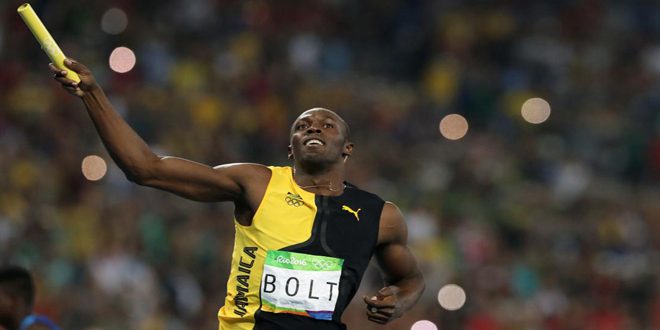 قاد يوسين بولت بلاده جامايكا للفوز بذهبية سباق التتابع أربعة في 100 متر بألعاب القوى في اولمبياد ريودي جانيرو بزمن 27ر37 ثانية أمس ليكمل بذلك الهيمنة على سباقات السرعة للرجال في الأولمبياد للمرة الثالثة على التوالي.
