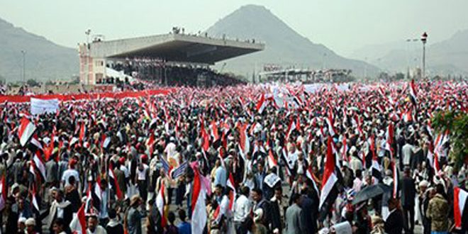 بارك المشاركون في التظاهرة الجماهيرية المليونية بميدان السبعين في العاصمة اليمنية صنعاء اليوم الإتفاق الوطني وأعربوا عن تأييدهم للمجلس السياسي الأعلى باعتباره الطريق لتوحيد الموقف الشعبي في مواجهة العدوان السعودي.