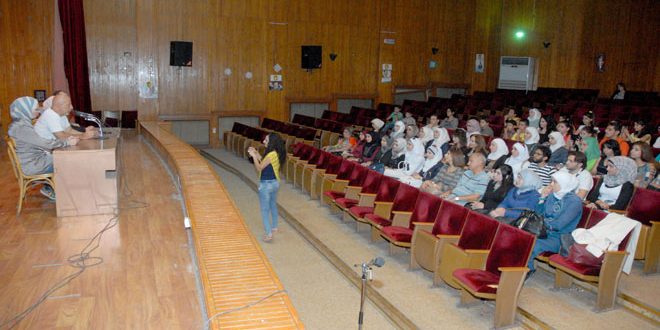 من جانبها قالت التشكيلية صفاء وبي في مداخلتها بالمحاضرة ان هناك سؤال يطرح نفسه حول موضوع التشاركية او التفرد في العمل وخاصة في الفن التشكيلي مبينة ان فريق ايقاع الحياة وجد الاجابة عن هذا التساؤل القديم من خلال عمله الجماعي الذي بدأ منذ اكثر من خمس سنوات والمستمر حتى اليوم في تقديم الاعمال الفنية كعربون محبة لبلدنا سورية.