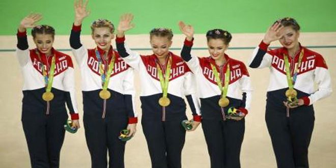 تفوقت روسيا على باقي المنافسين في الجمباز الإيقاعي لتفوز بالذهبية الأولمبية الخامسة على التوالي في مسابقة كل الحركات لفرق السيدات في أولمبياد ريو دي جانيرو.
