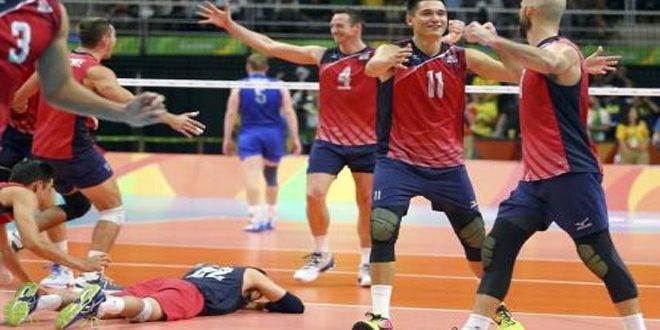 وأحرز الفريق الأمريكي الميدالية البرونزية بفوزه على نظيره الروسي حامل اللقب الأولمبي في مباراة ماراثونية من خمسة أشواط.