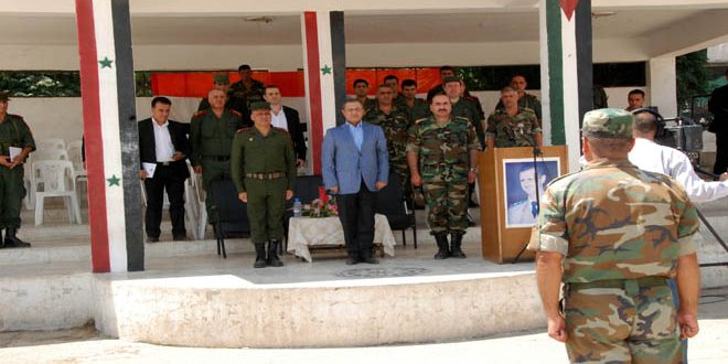 وخاطب اللواء الشعار الخريجين قائلا.. إن دوركم كبير والمهام التي تنتظركم جسيمة ومهمة لأنكم معنيون بخوض معركتين في آن واحد من خلال تصليب مناعة المواطنين والدفاع عن الوطن إلى جانب زملائكم في القوات المسلحة للقضاء على هؤلاء الإرهابيين الذين ينتشرون في بعض المناطق على الأرض السورية.