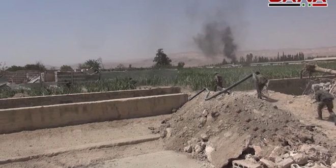 وأشار المراسل إلى أن وحدات الجيش العاملة على اتجاه ريف حلب الجنوبي “وجهت نيران أسلحتها المدفعية والصاروخية إلى خطوط وطرق انسحاب ما تبقى من أفراد المجموعات الارهابية المهاجمة موقعة إصابات مباشرة في صفوفهم”.