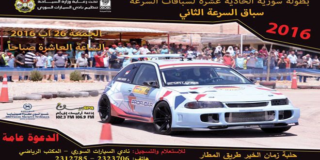 تنطلق يوم الجمعة القادم المرحلة الثانية من بطولة سورية لسباقات السرعة على حلبة زمان الخير بريف دمشق بمشاركة 30 متسابقا من أبطال سورية.
