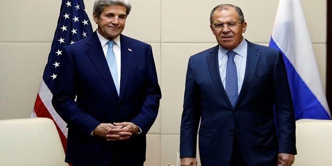 بحث وزير الخارجية الروسي سيرغي لافروف ونظيره الامريكي جون كيري خلال اتصال هاتفي اليوم الأزمة في سورية وآفاق محاربة الإرهاب فيها.