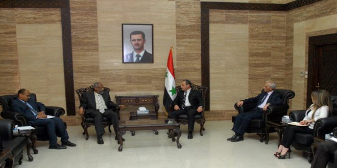 بحث وزير الصحة الدكتور نزار يازجي مع السفير السوداني بدمشق خالد أحمد محمد علي سبل تعزيز وتطوير علاقات التعاون الصحي بين البلدين وإمكانية إقامة استثمارات مشتركة في مجال الصناعات الدوائية.
