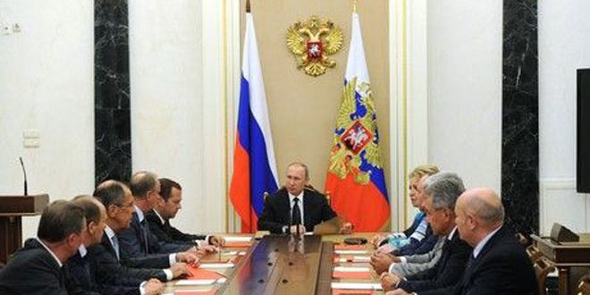 بحث الرئيس الروسي فلاديمير بوتين مع الأعضاء الدائمين بمجلس الأمن القومي الروسي نتائج المباحثات الأخيرة بين وزير الخارجية الروسي سيرغي لافروف والأمريكي جون كيري حول سورية في جنيف.