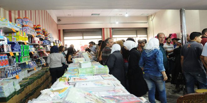 في إطار الاستعدادات والتحضيرات للعام الدراسي القادم افتتحت المؤسسة العامة لتوزيع المنتجات النسيجية “سندس” اليوم عددا من المعارض بالوقت نفسه تحت عنوان “حضن الوطن دافي” توزعت في محافظات ومناطق وقرى عدة بهدف تأمين مختلف مستلزمات الطلاب من القرطاسية واللباس المدرسي وغيرها بأسعار معقولة تناسب مختلف الشرائح.