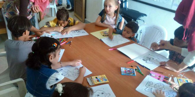 نظم فرع جمعية تنظيم الأسرة السورية في محافظة درعا بالتعاون مع دائرة العلاقات المسكونية والتنمية في بطريركية انطاكية وسائر المشرق للروم الارثوذكس اليوم نشاطا ترفيهيا ل 40 طفلا من ذوي الاحتياجات الخاصة في مركز الإعاقة الذهنية بمبنى مديرية الشؤون الاجتماعية بالمدينة.