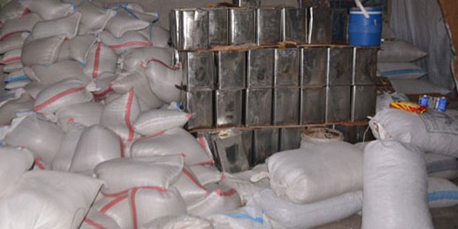 ضبطت عناصر حماية المستهلك في مديرية التجارة الداخلية وحماية المستهلك بدمشق مؤخرا نحو 64 طنا من المواد الغذائية الإغاثية في عدة مستودعات مخالفة بدمشق ونظمت الضبوط المناسبة بحق أصحاب هذه المستودعات وصادرت المواد وسلمتها للجنة الفرعية للإغاثة التابعة للهلال الأحمر العربي السوري.