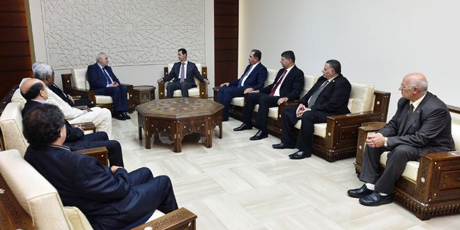 استقبل السيد الرئيس بشار الأسد أعضاء الأمانة العامة للاتحاد الدولي لنقابات العمال العرب اليوم برئاسة غسان غصن الأمين العام للاتحاد.