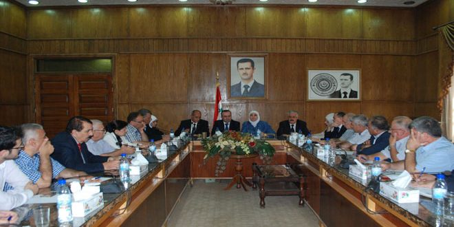 حضر اللقاء محافظ حماة الدكتور غسان خلف وأمين فرع حماة لحزب البعث العربي الاشتراكي مصطفى سكري وفعاليات حزبية وإدارية.
