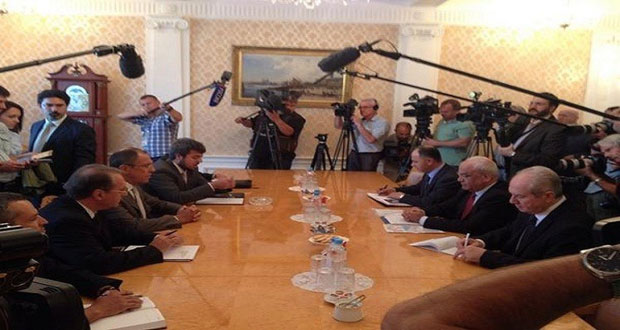 وقال لافروف في بداية مباحثاته في موسكو اليوم مع رئيس الوفد الفلسطيني في المفاوضات مع اسرائيل صائب عريقات “توجد لدينا أفكار معينة بهذا الصدد ونود تبادلها معكم ونسمع منكم بالمقابل ما الذي تعتزمون اتخاذه للتوصل الى تسوية ثابتة وشاملة”.