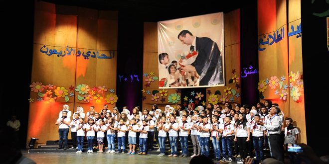 احتفلت منظمة طلائع البعث اليوم بعيدها الحادي والأربعين في دار الأوبرا بدمشق تحت عنوان “بالإرادة نواجه تحديات الحاضر.. ونصنع المستقبل”.