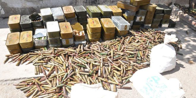ضبطت الجهات المختصة في حمص خلال عملية نوعية مستودع ذخيرة للتنظيمات الإرهابية في قرية الحمرا بريف حماة الشرقي قرب الحدود الإدارية لمحافظة حمص.