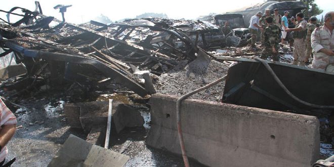 ونفذ إرهابيون صباح اليوم تفجيرات متزامنة عند جسر أرزونة على الطريق الدولي بريف طرطوس وفي حي باب تدمر بمدينة حمص وعلى طريق الصبورة -البجاع بريف دمشق الغربي وعند دوار مرشو شمال مركز مدينة الحسكة أدت إلى ارتقاء عشرات الشهداء وإصابة العديد من المواطنين.