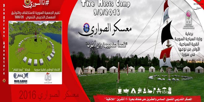 تنطلق في التاسع من الشهر الجاري على ضفاف بحيرة 16 تشرين بمنطقة مشقيتا في اللاذقية فعاليات معسكر الصواري التدريبي التنموي الذي تقيمه الجمعية السورية للاستكشاف والتوثيق بالتنسيق مع وزارة السياحة والاتحاد الوطني لطلبة سورية.