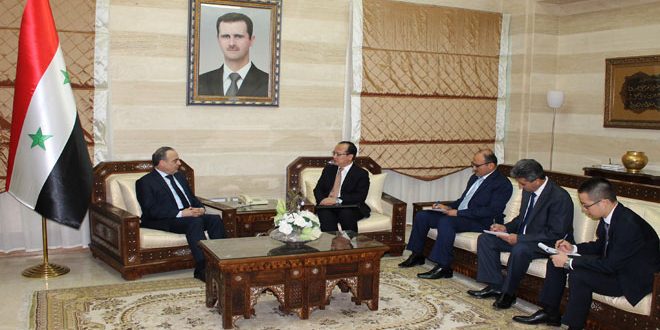 وتم خلال الاجتماع بحث علاقات التعاون الاقتصادية وسبل تطويرها من خلال إيجاد رؤى جديدة لاستمرار العلاقات وتفعيلها إضافة إلى دفعها لمستويات أعمق بدعوة المستثمرين الصينيين للمساهمة في مرحلة إعمار سورية.