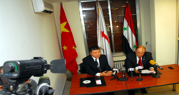 يشار إلى أن الحكومة الصينية بادرت بتقديم المساعدات الإغاثية للهلال الأحمر العربي السوري في بداية العام الحالي وهي 20 ألف غطاء صوفي و20 الف بطانية وزعتها فرق الهلال على المحتاجين في المحافظات.