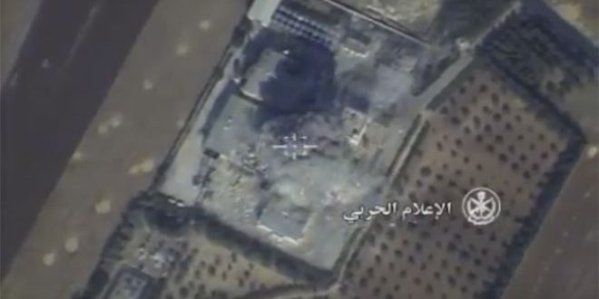 الطيران الحربي يدمر مستودعات ومعامل تفخيخ للإرهابيين في التمانعة بريف إدلب