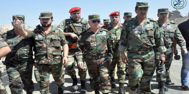 بتوجيه من السيد الرئيس الفريق بشار الأسد القائد العام للجيش والقوات المسلحة قام العماد علي عبد الله أيوب رئيس هيئة الأركان العامة للجيش بجولة ميدانية تفقد فيها قواتنا المسلحة العاملة في حلب وريفها.