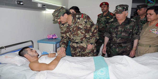 بتوجيه من السيد الرئيس الفريق بشار الأسد القائد العام للجيش والقوات المسلحة وبمناسبة حلول عيد الأضحى المبارك قام العماد فهد جاسم الفريج نائب القائد العام وزير الدفاع صباح اليوم بزيارة جرحى الجيش العربي السوري في مشفى تشرين العسكري ونقل إليهم محبة الرئيس الأسد واعتزازه ببطولاتهم التي سطروها في ميادين القتال ضد أعداء الوطن والشعب من الإرهابيين المجرمين.