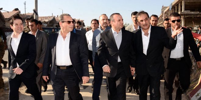 تفقد وزراء الادارة المحلية والبيئة المهندس حسين مخلوف والسياحة المهندس بشر اليازجي والصحة الدكتور نزار يازجي ومحافظ حلب حسين دياب اليوم أعمال صيانة وتأهيل المرافق والخدمات الجارية في منطقة الراموسة التي طهرها الجيش العربي السوري من التنظيمات الإرهابية.