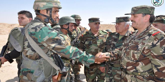 بتوجيه من السيد الرئيس الفريق بشار الأسد القائد العام للجيش والقوات المسلحة قام العماد فهد جاسم الفريج نائب القائد العام نائب رئيس مجلس الوزراء وزير الدفاع بجولة ميدانية على عدد من المواقع والوحدات العسكرية في تدمر بريف حمص الشرقي.