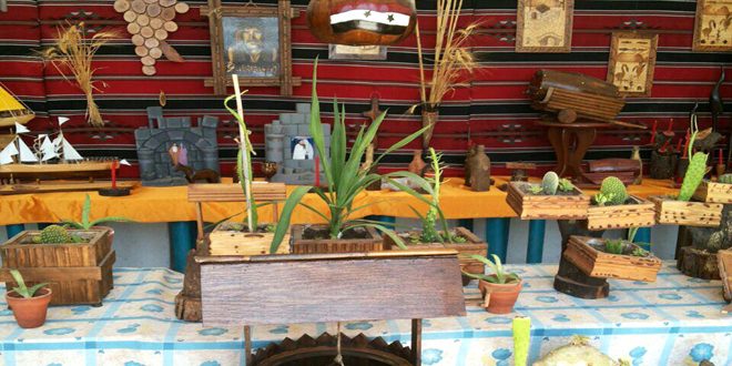 وضم المعرض الذي تقيمه مديريتا السياحة والشؤون الاجتماعية والعمل بالسويداء بالتعاون مع الجمعية الخيرية في بلدة الرحى أعمالاً فنية ومصنوعات يدوية تراثية وتحفا شرقية متنوعة ومشغولات من مادة الخشب.