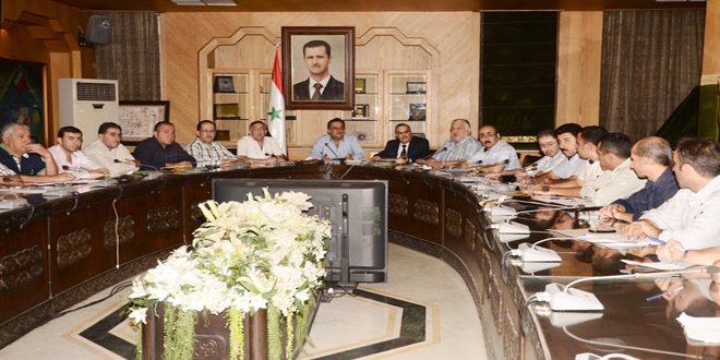 بحث محافظ حلب حسين دياب في اجتماعين موسعين مع المديرين والموظفين في مديريات الأمانة العامة للمحافظة والمعنيين في مجلس المدينة اليوم الواقع الخدمي وسبل تحسينه.
