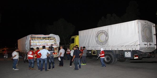 بإشراف الهلال الأحمر العربي السوري تم مساء اليوم إدخال قافلة مساعدات إلى الأهالي في مدينة المعضمية بريف دمشق مقدمة من برنامج الأغذية العالمي واليونيسيف والمفوضية السامية لشؤون اللاجئين ومنظمة الصحة العالمية.