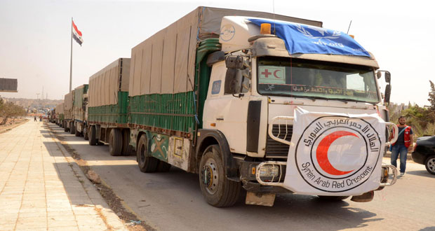 بدعم من الحكومة السورية قامت محافظة حلب اليوم بالتعاون مع برنامج الغذاء العالمي وفرع الهلال الأحمر العربي السوري بإرسال قافلة مساعدات إنسانية وإغاثية لريف حلب الشمالي والغربي.